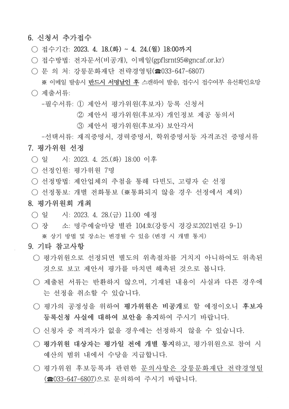 재단법인 강릉문화재단 강릉시문화도시지원센터(제2차) 계약직 근로자 공개경쟁채용 서류심사 합격자(면접전형 대상자) 인원 재공지