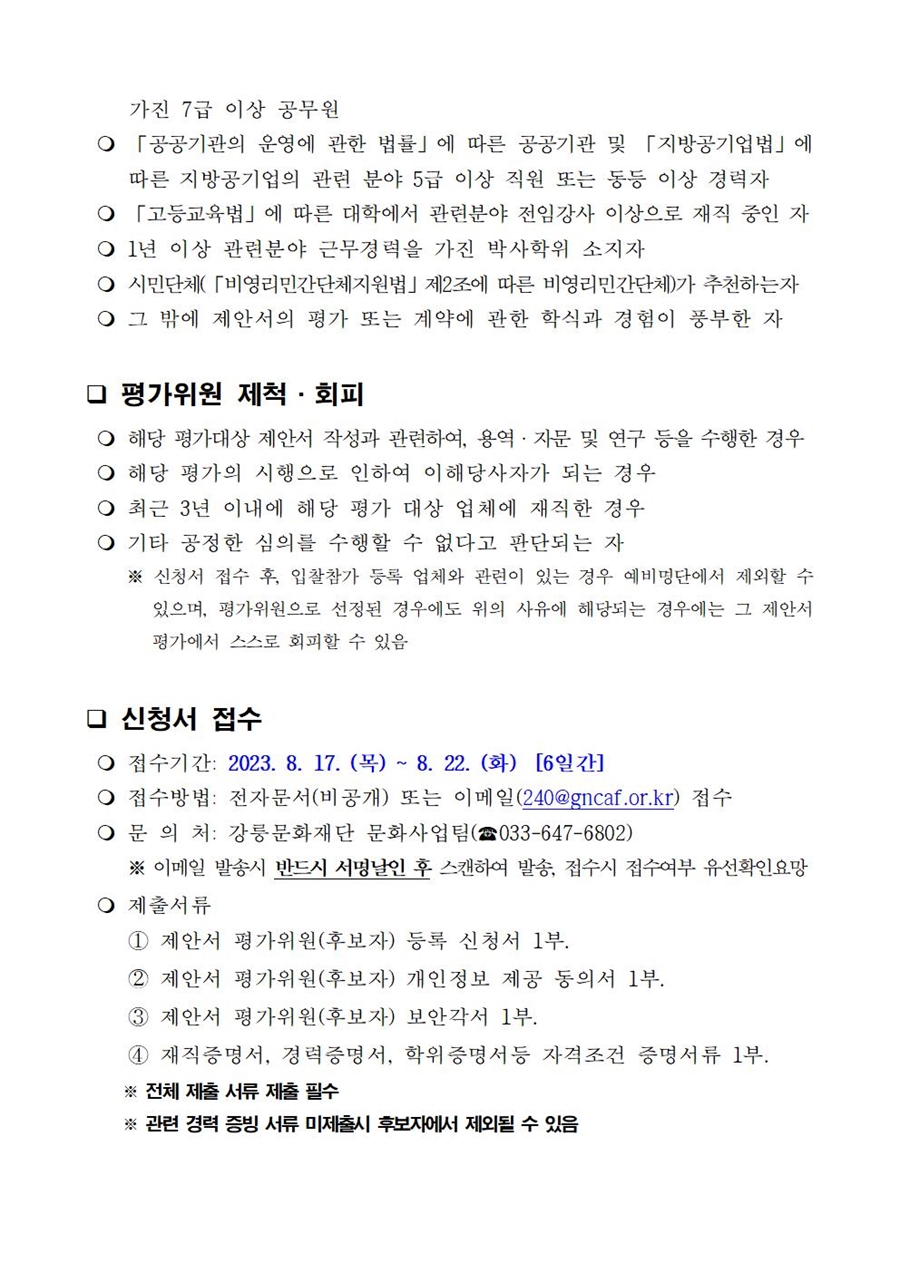[채용공고] 재단법인 강릉문화재단 비상근이사 및 감사 공개모집