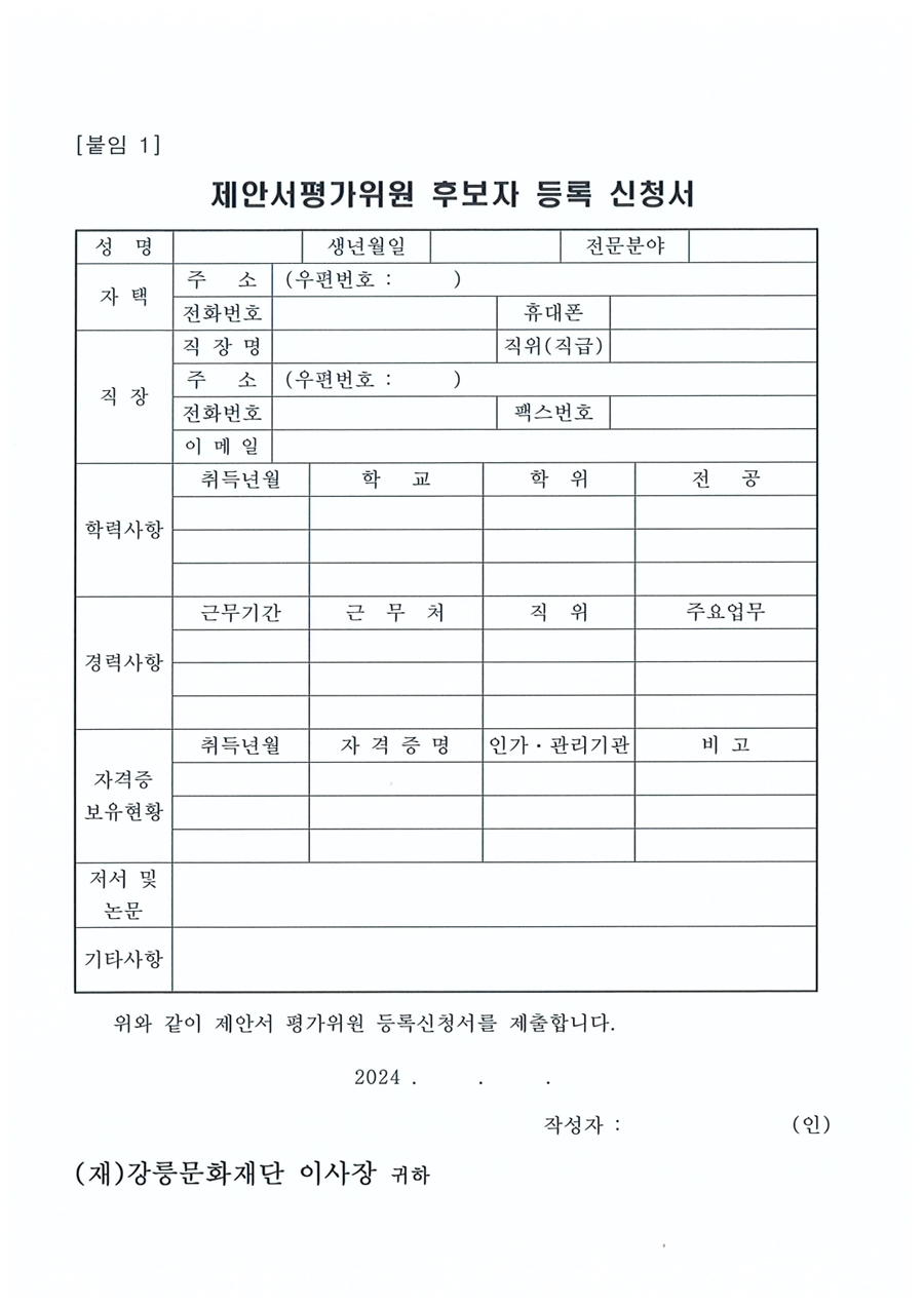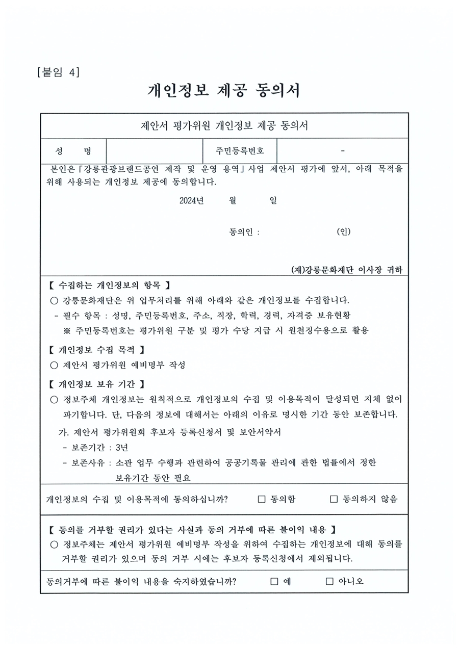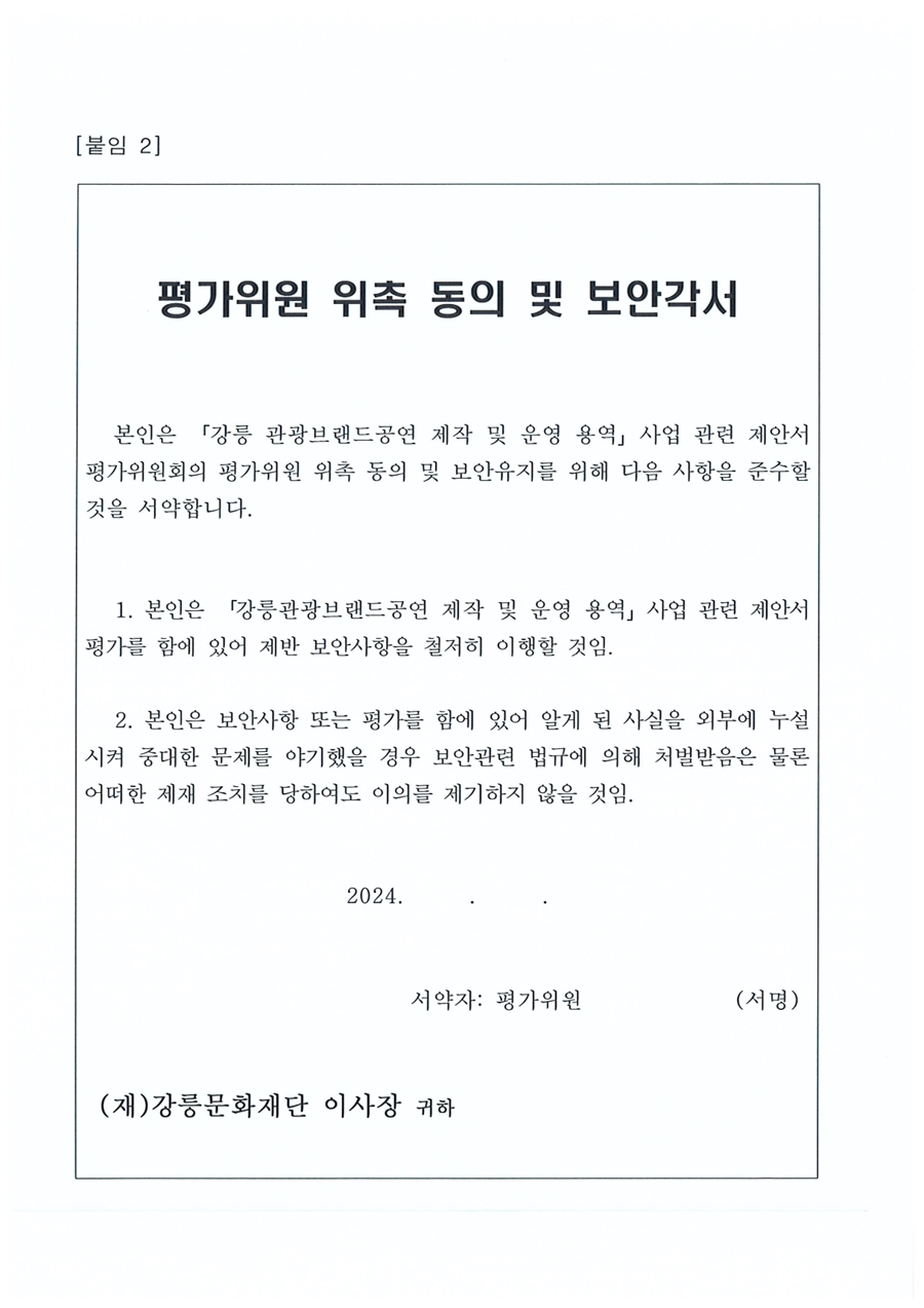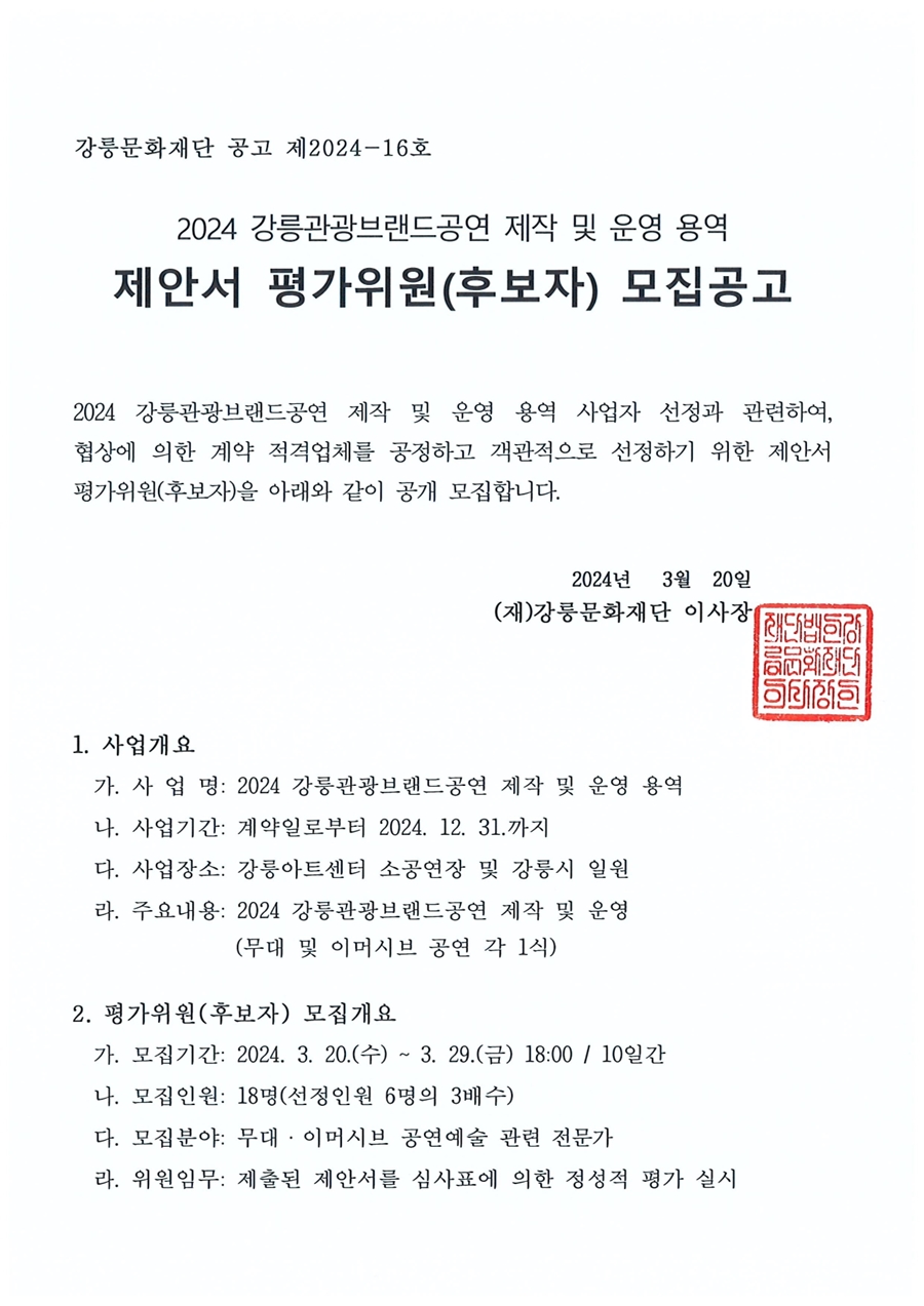 2024 강릉관광브랜드공연 제작 및 운영 용역 제안서 평가위원(후보자) 모집공고