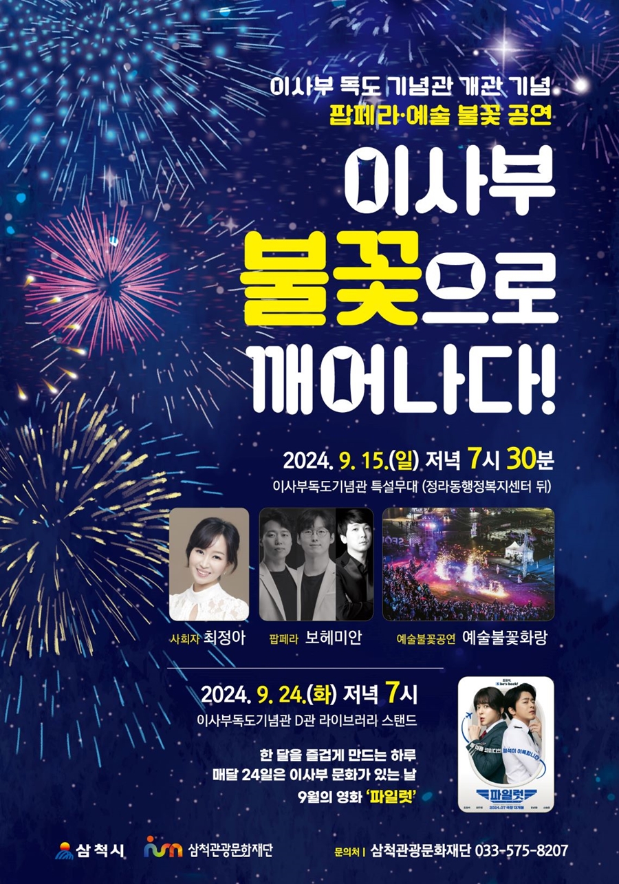 1. 공 연 명 : 2024 이사부 독도 기념관 개관 공연 [팝페라·예술 불꽃 공연 '이사부 불꽃으로 깨어나다!']