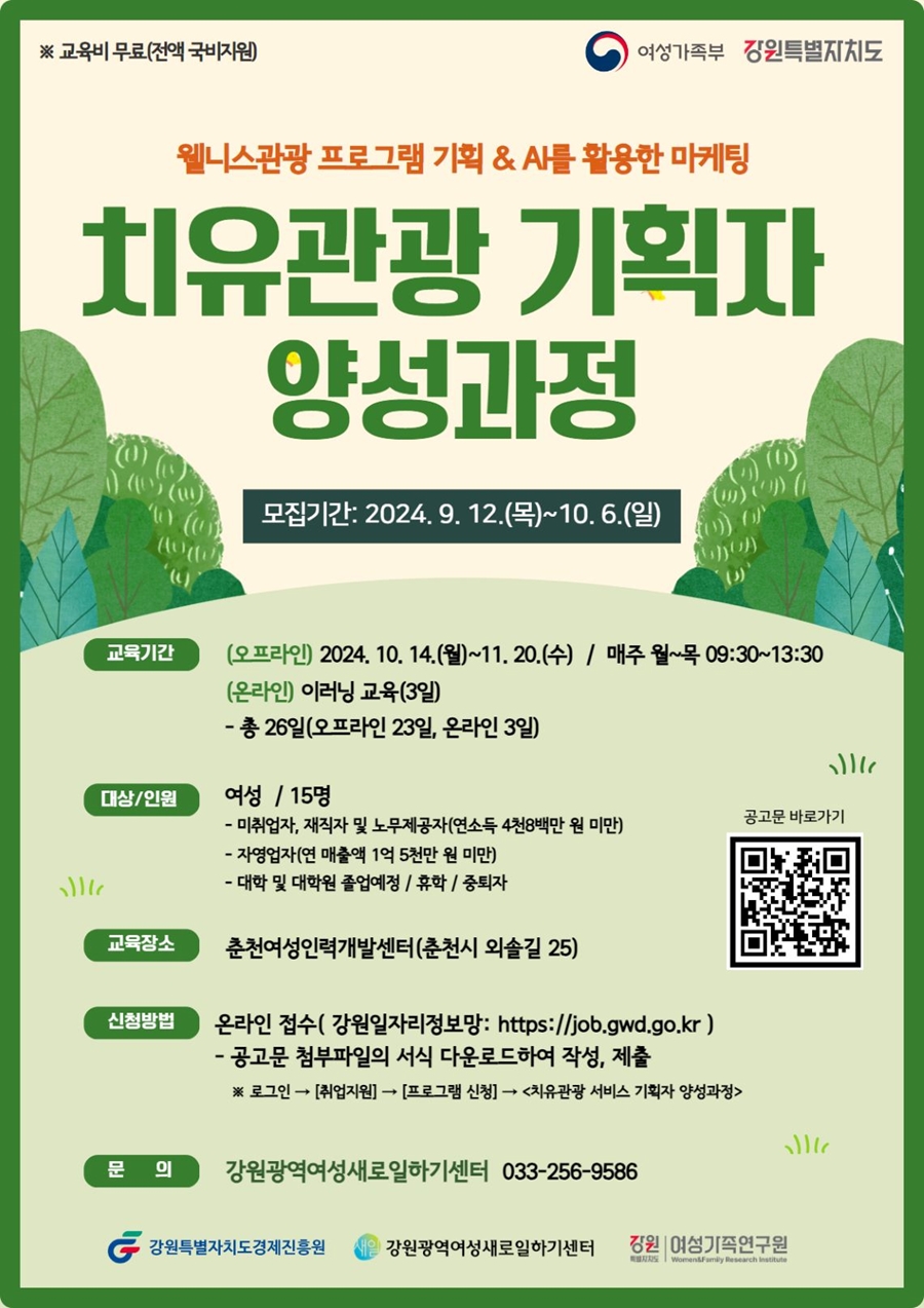 1. 과정명 : 치유관광 서비스 기획자 양성과정
