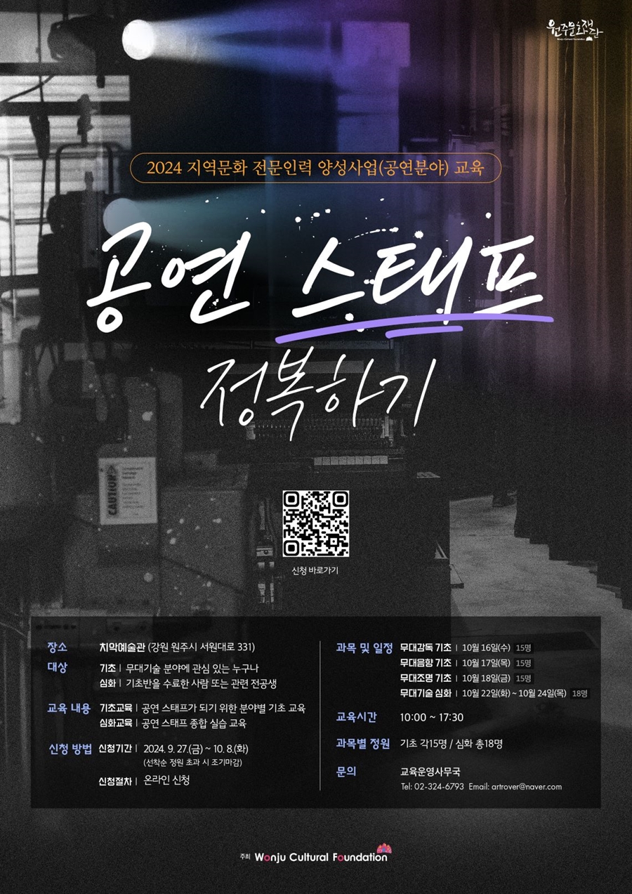 ○ 교 육 명: 2024 지역문화 전문인력 양성사업(공연분야) <공연스태프 정복하기>