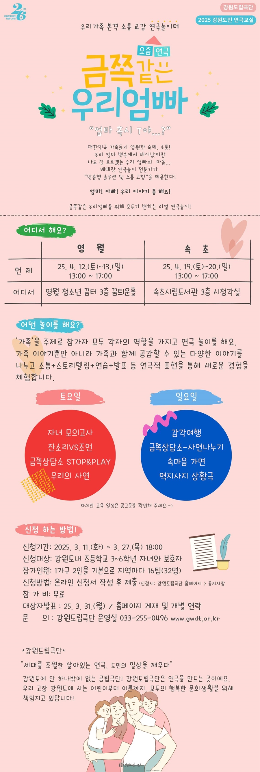 1. 사 업 명 : 2025 강원도민 연극교실 가족편