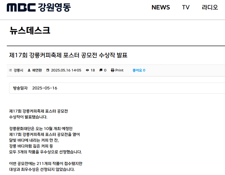 [MBC강원영동] 제17회 강릉커피축제 포스터 공모전 수상작 발표