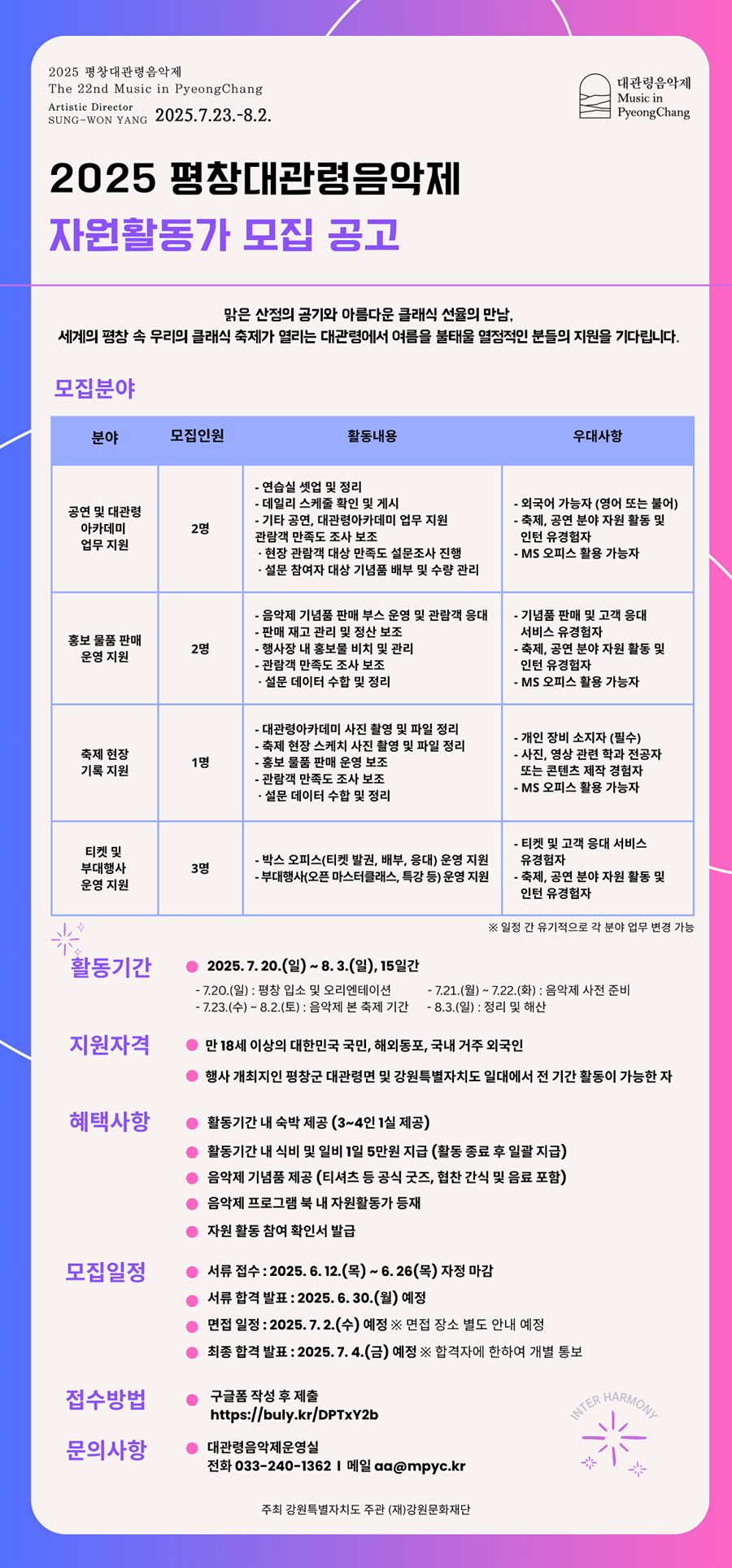 1. 사 업 명 : 2025년 평창대관령음악제 자원활동가 모집