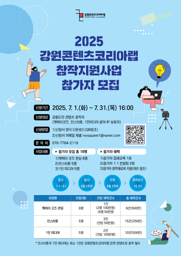 1. 사 업 명 : 2025년 강원콘텐츠코리아랩 창작지원사업