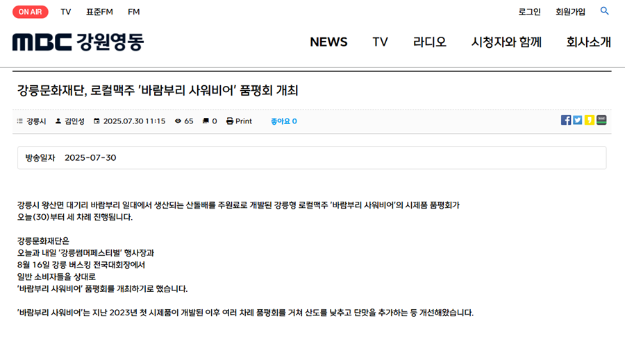 [MBC강원영동] 강릉문화재단, 로컬맥주 '바람부리 사워비어' 품평회 개최
