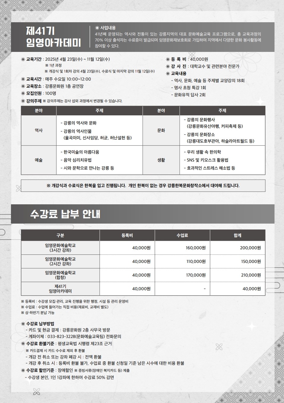 [교육/포럼] 2025년도 강릉문화원 평생교육원 수강생 모집