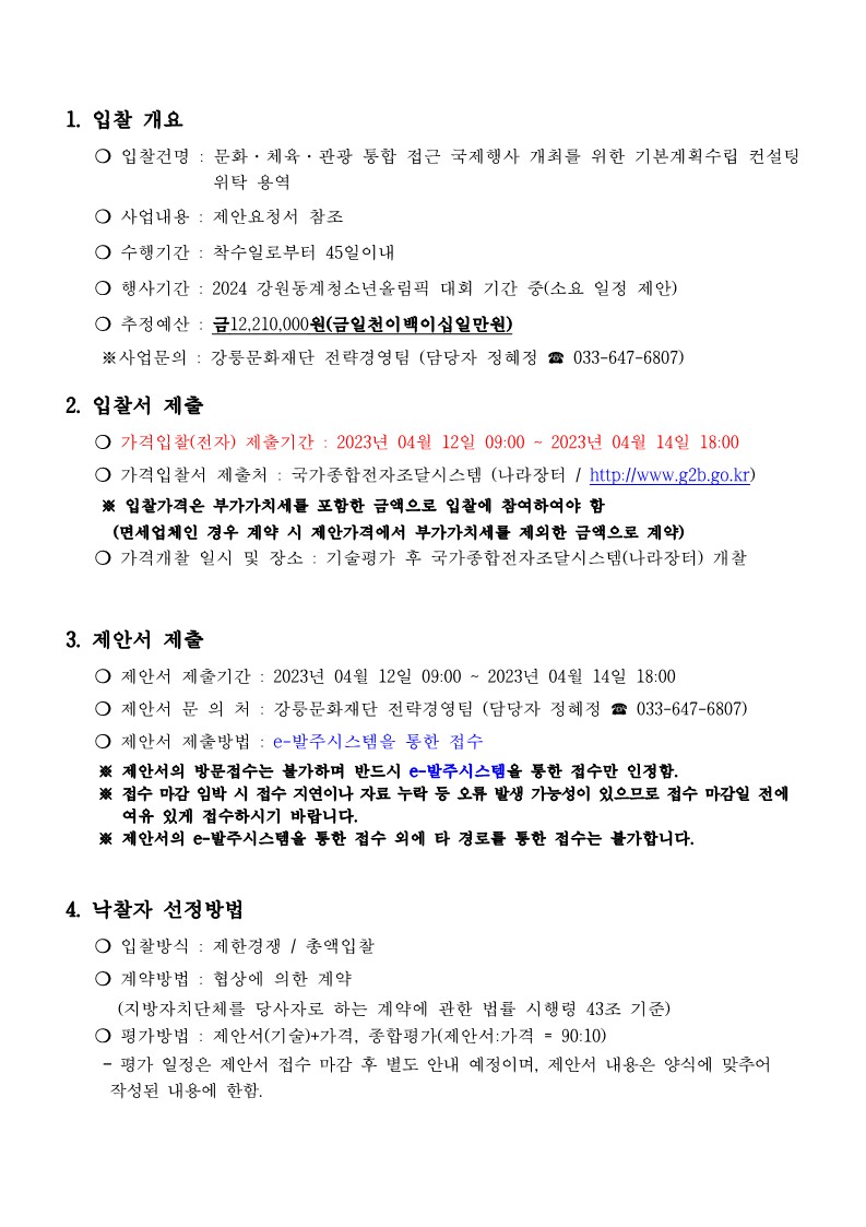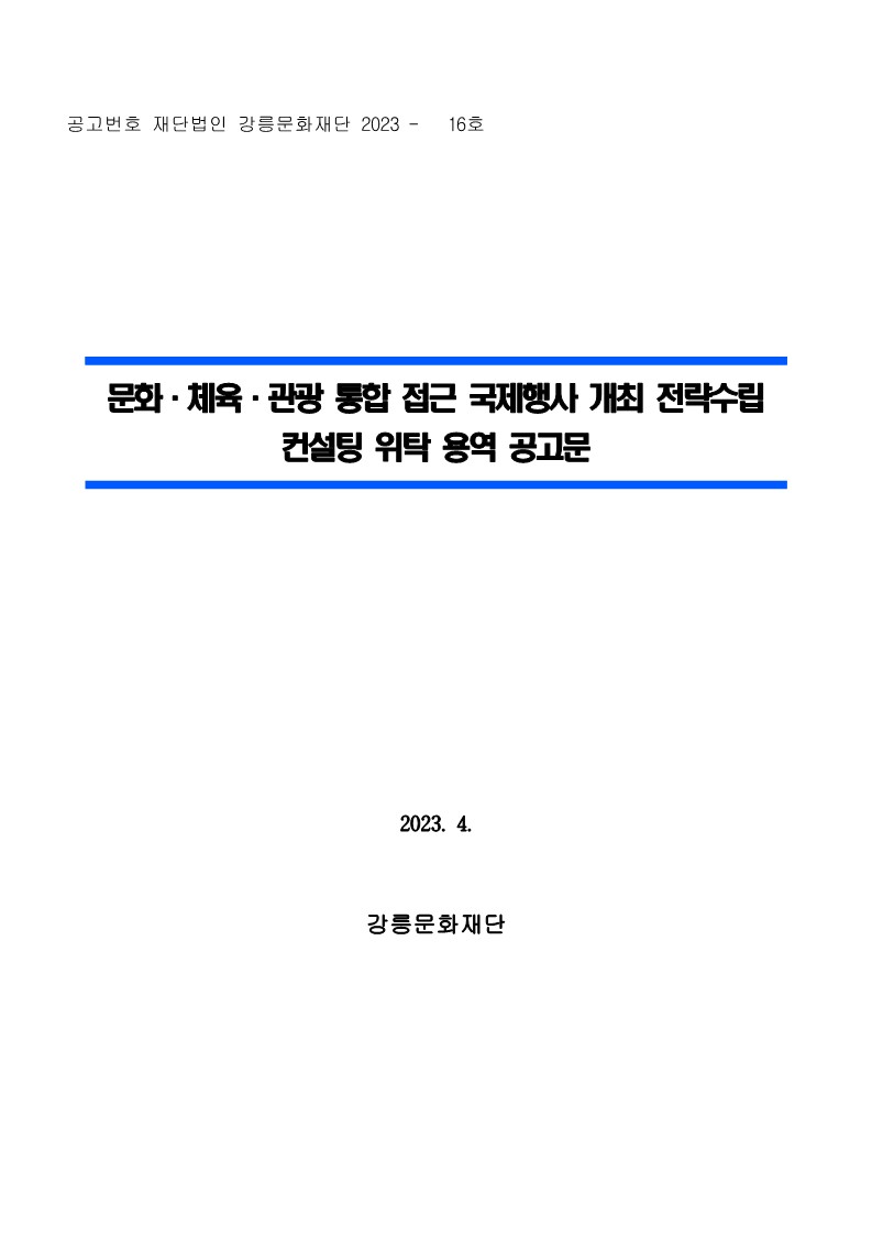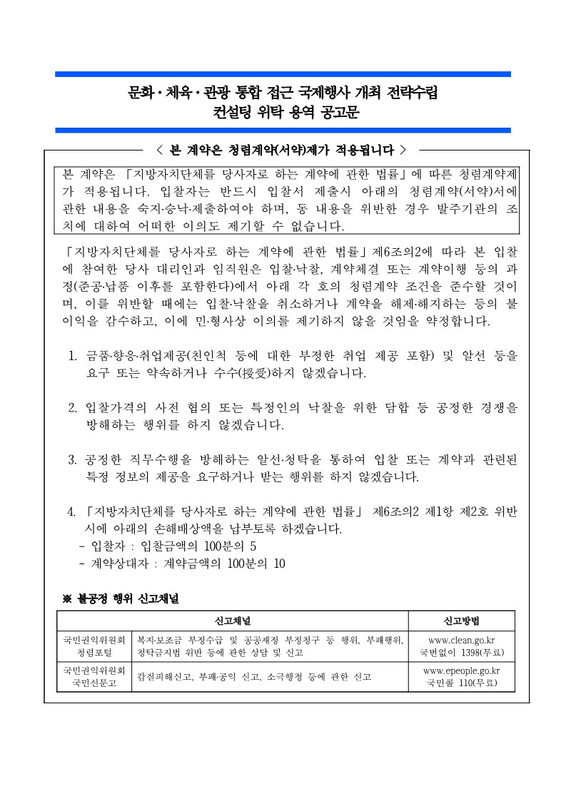 문화·체육·관광 통합 접근 국제행사 개최 전략 수립 컨설팅 위탁 용역 공고문