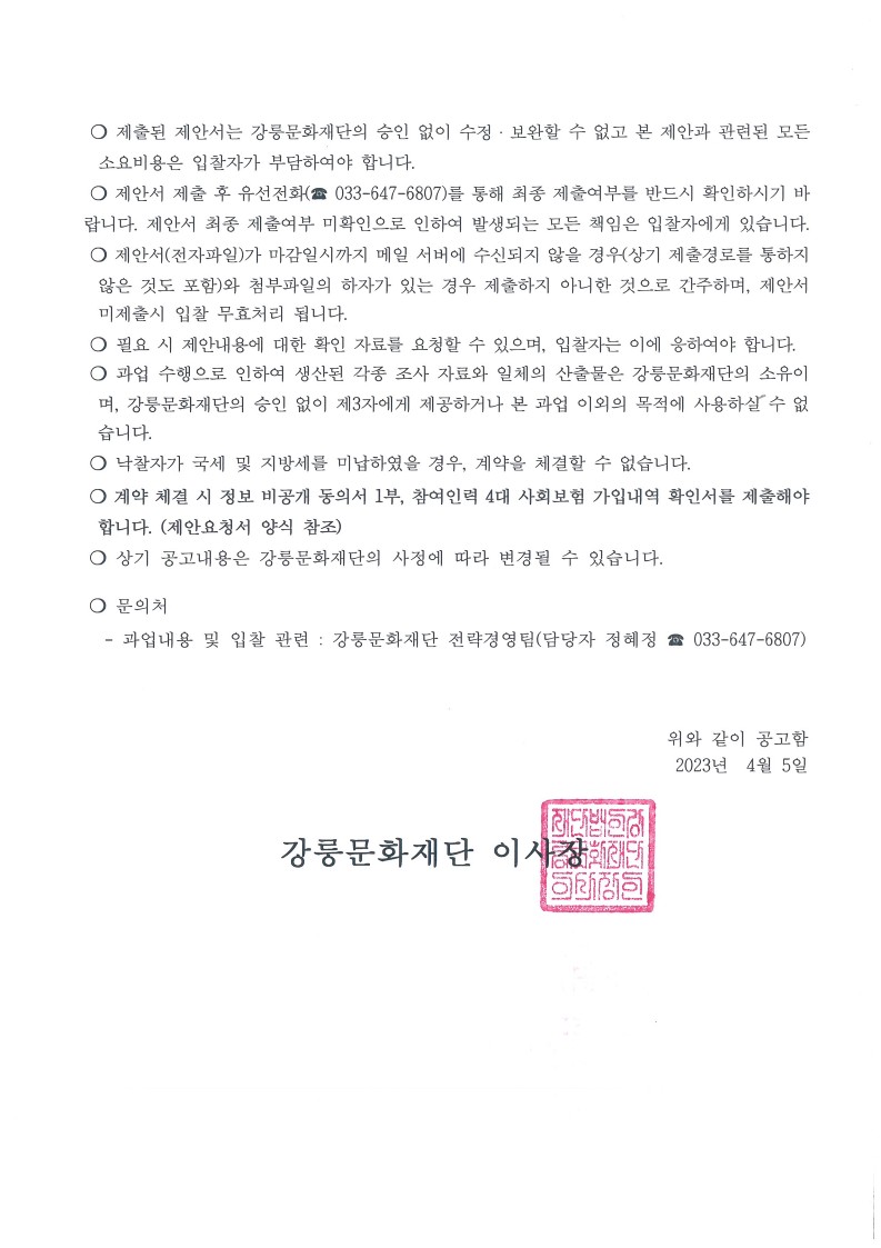 재단법인 강릉문화재단 강릉 브랜드 공연 시책추진 TF팀 계약직 근로자 공개경쟁채용 공고