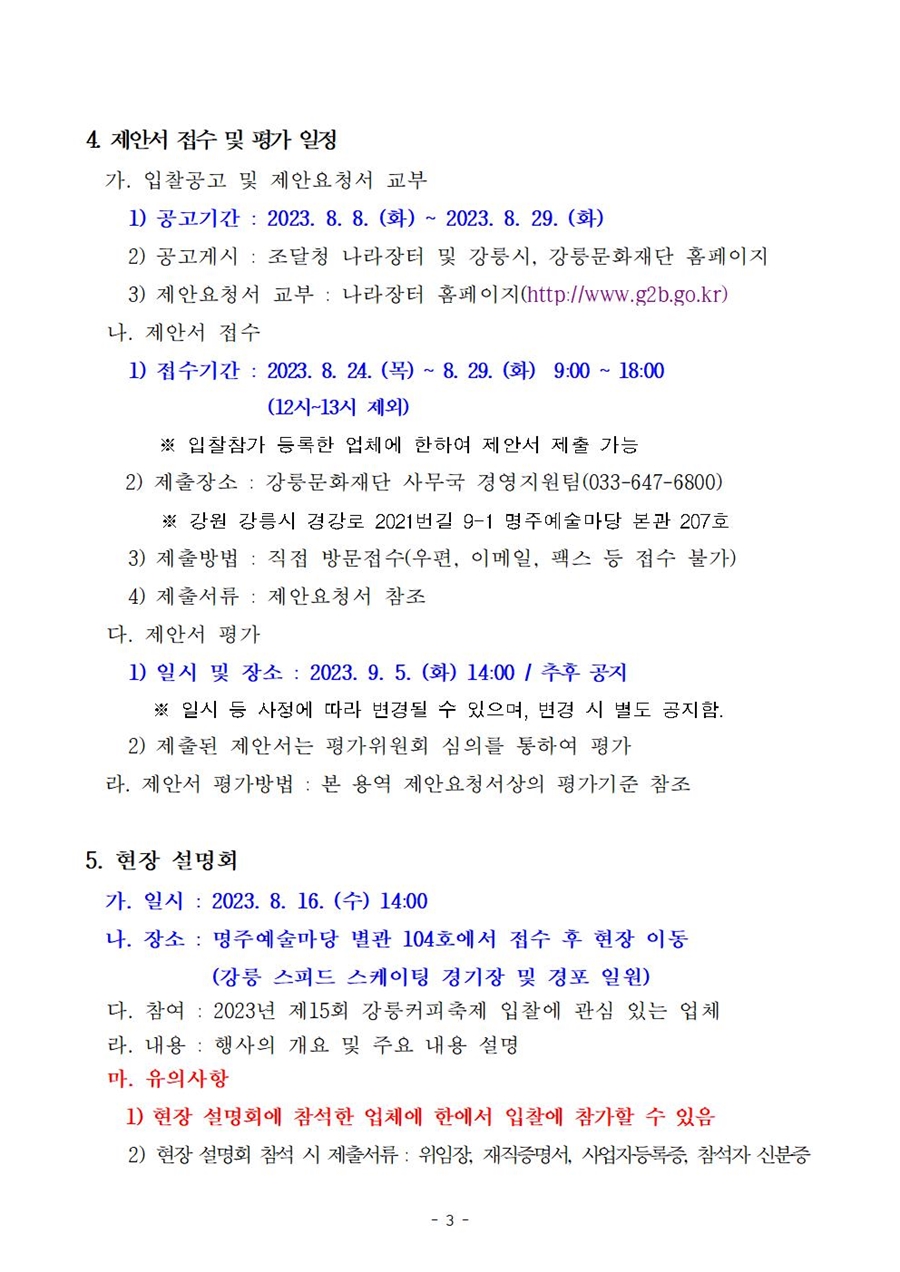 「제15회 강릉커피축제 무대시스템 및 행사운영시설 (부스, 전기, 기타시설, 기타운영) 대행 용역」 제안서 평가위원(후보자) 추가 모집 공고