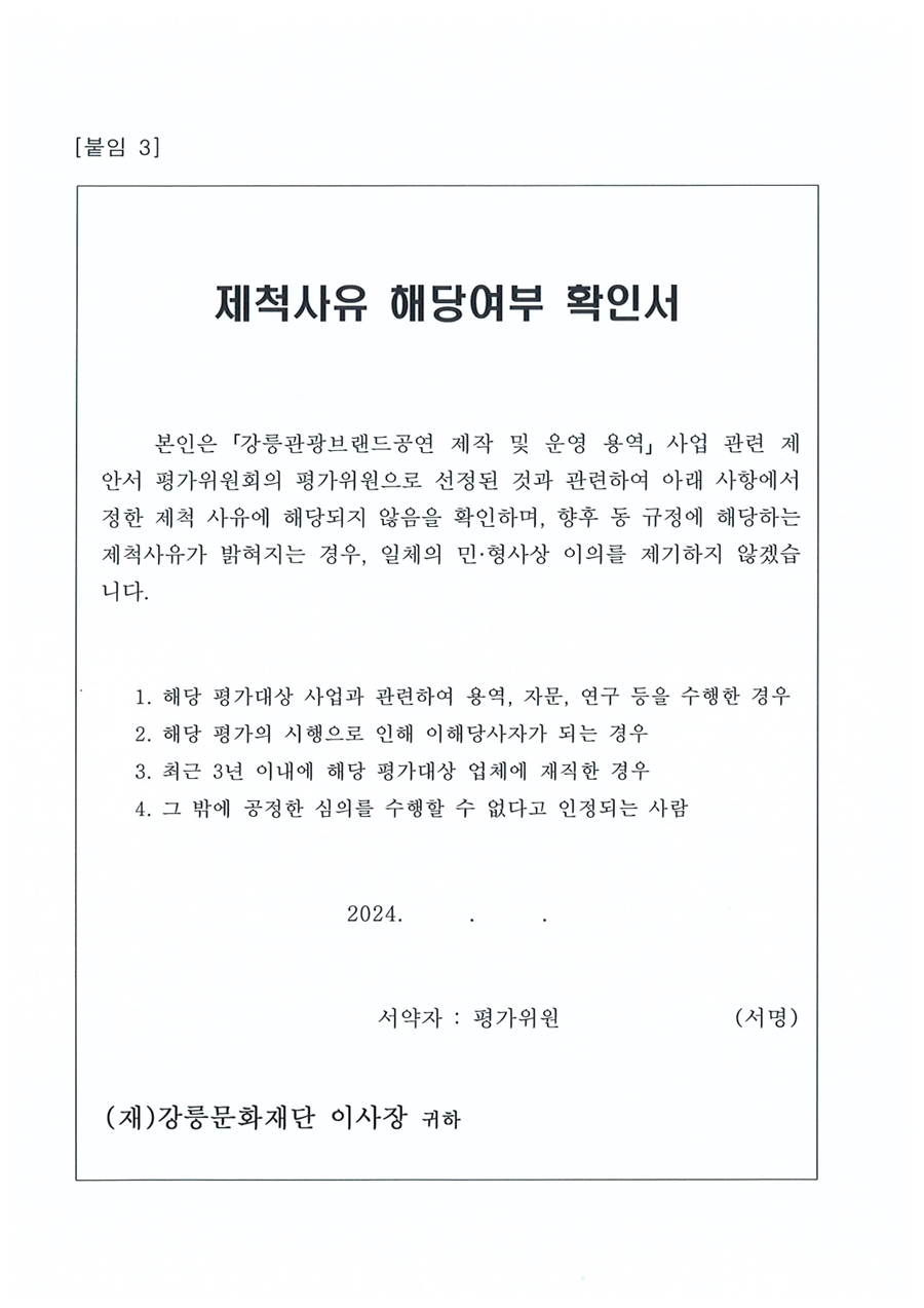 2024 강릉관광브랜드공연 제작 및 운영 용역 제안서 평가위원(후보자) 모집공고