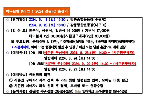 강원FC 2024 K리그 강릉 홈경기 9월 관람 안내