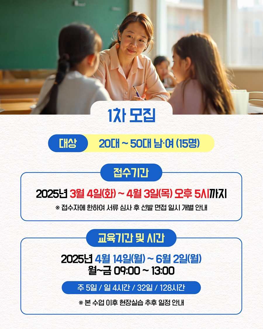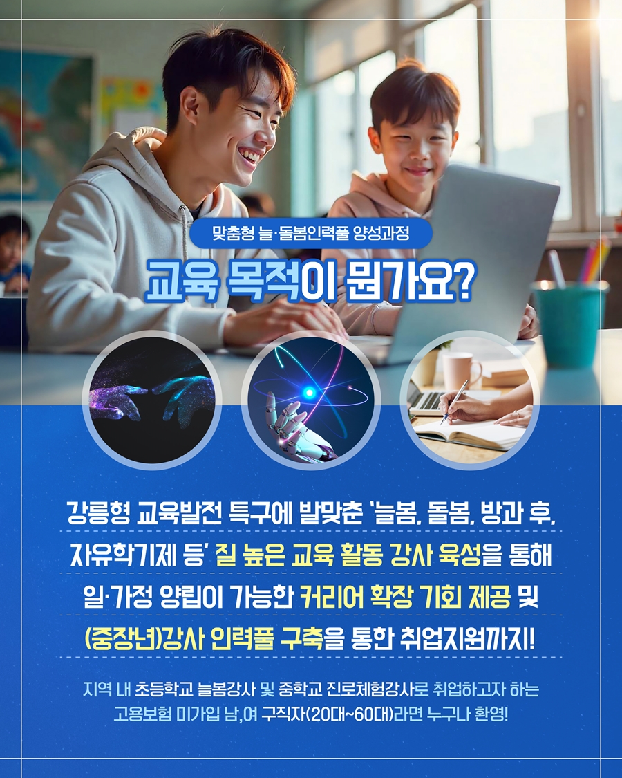 4. 교육대상 : 지역 내 늘봄강사 및 진로체험강사로 취업하고자 하는 구직자(20~50대) 15명