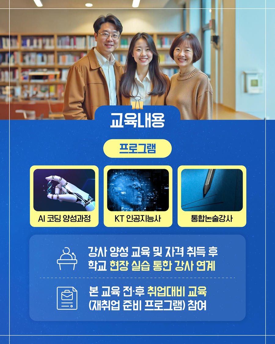 5. 교육내용 : AI코딩양성과정, KT인공지능사, 통합논술강사양성 교육 등