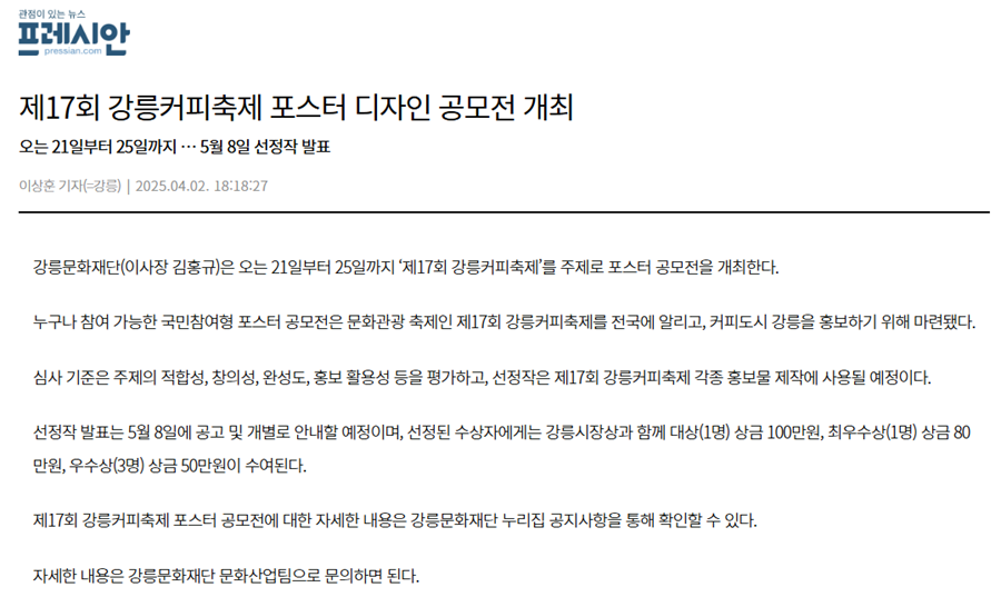 [프레시안] 제17회 강릉커피축제 포스터 디자인 공모전 개최