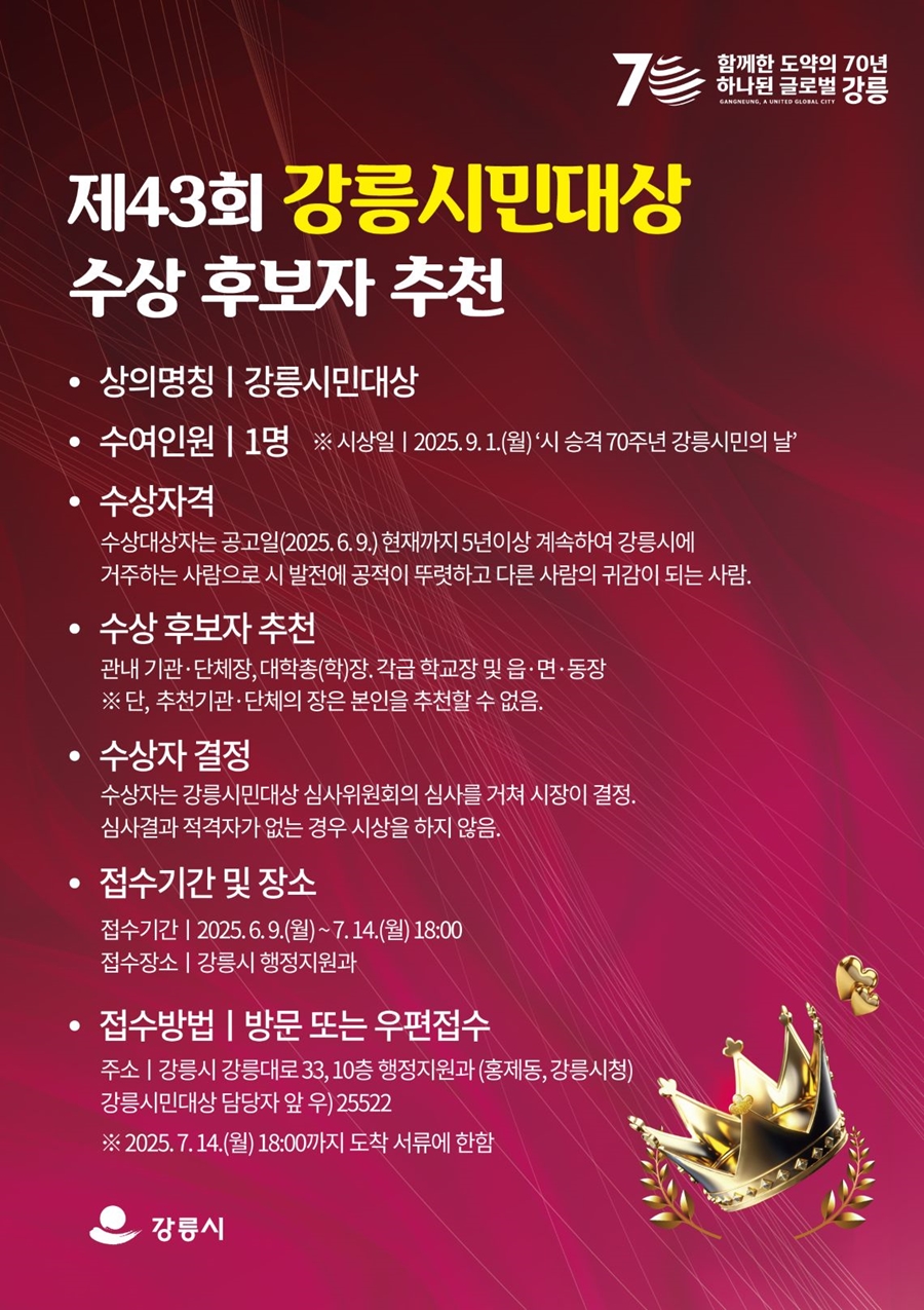 1. 시 상 명 : 2025년 제43회 강릉시민대상
