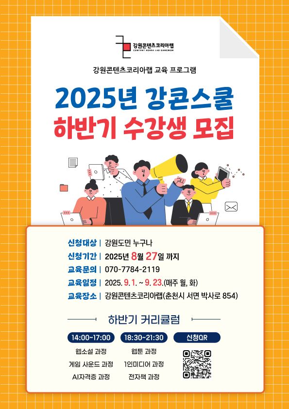 1. 사 업 명 : 2025 강원콘텐츠코리아랩 강콘스쿨 하반기 수강생 모집
