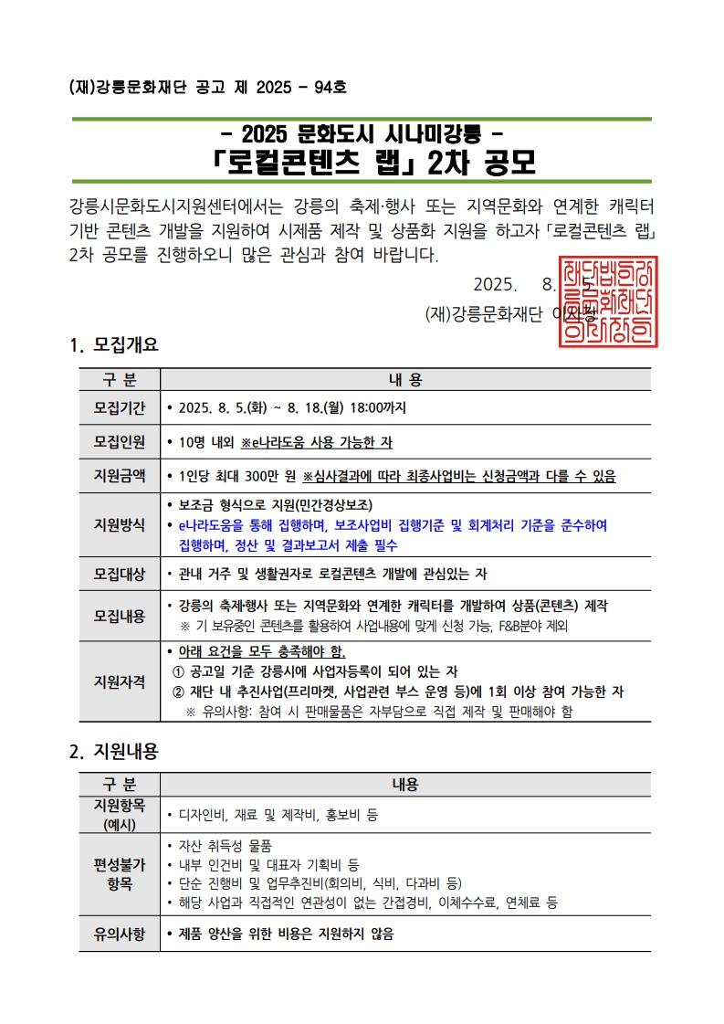 2025 문화도시 시나미강릉 「로컬콘텐츠 랩」 2차 공모 서식자료(1~4).hwp (26 KB)
