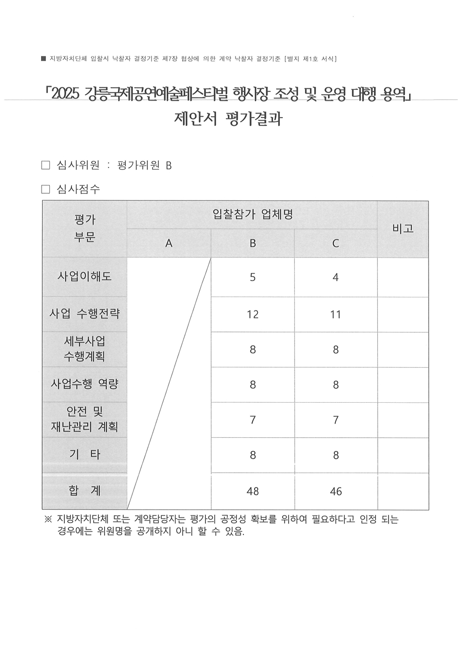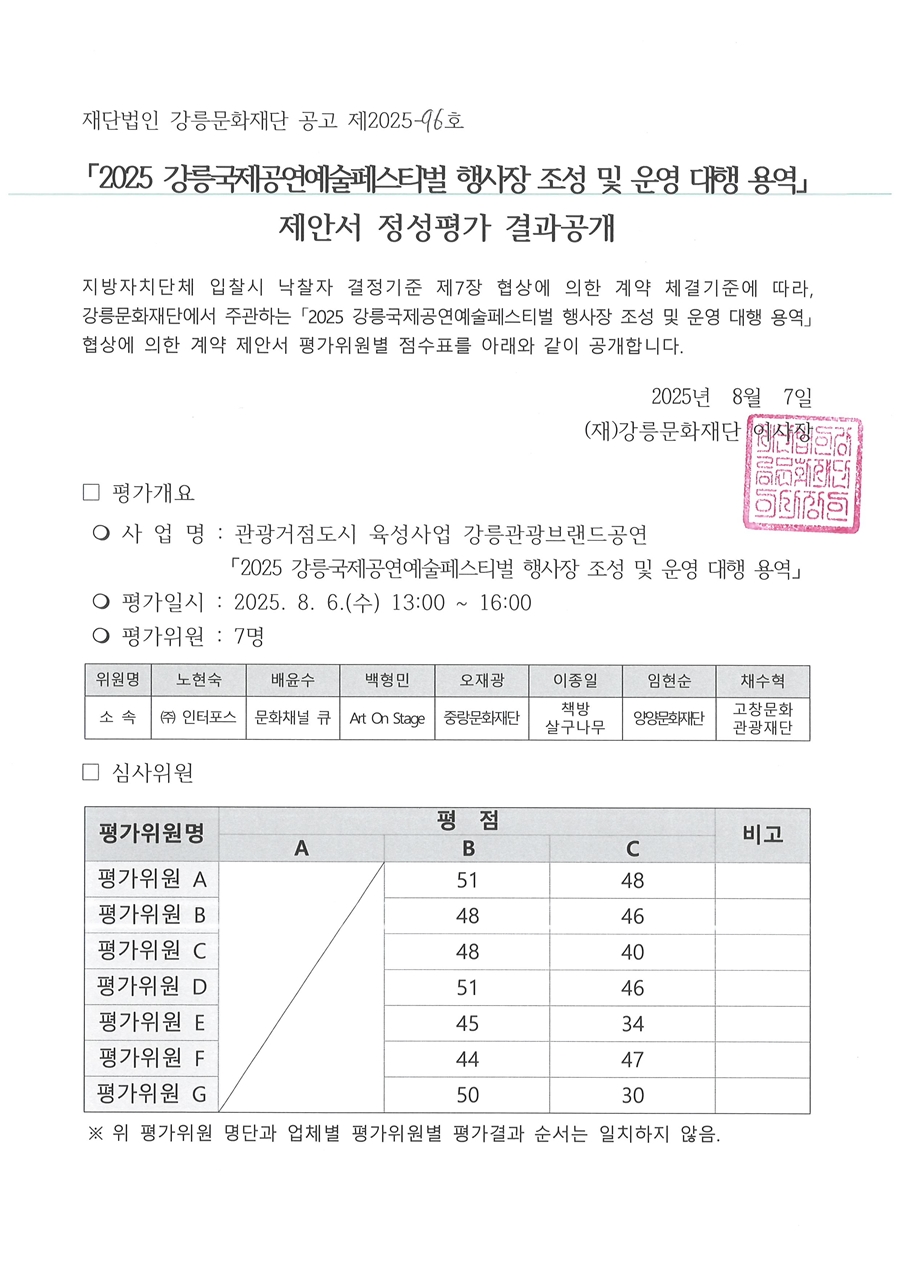2025 강릉국제공연예술페스티벌 행사장 조성 및 운영 대행 용역 제안서 (정성)평가 결과 공개