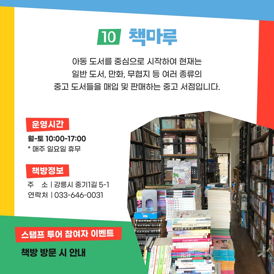 ⑩ 책마루 중고서점 : 강릉시 중기1길 5-1 (옥천동 309-1)