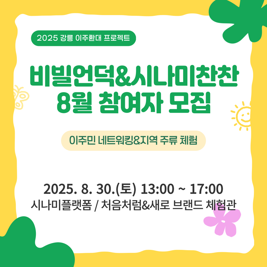8월 비빌언덕&시나미찬찬 참여자 모집!
