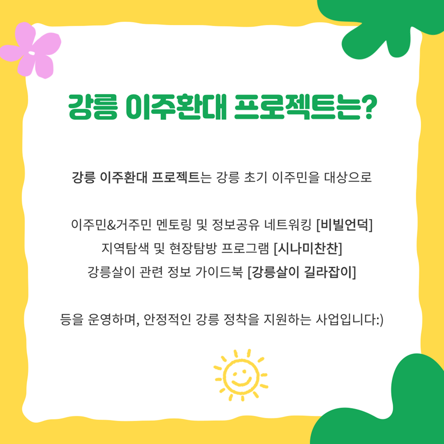 -참여대상 : 강릉 초기 이주민(이주관심자 포함) 및 기존 거주민