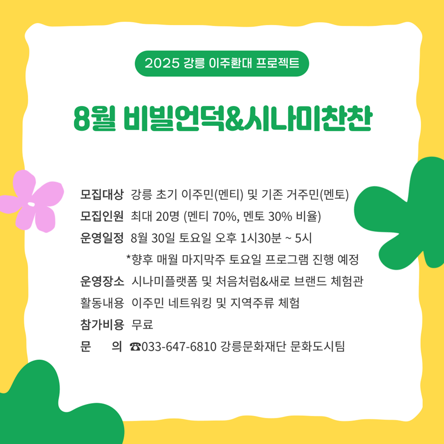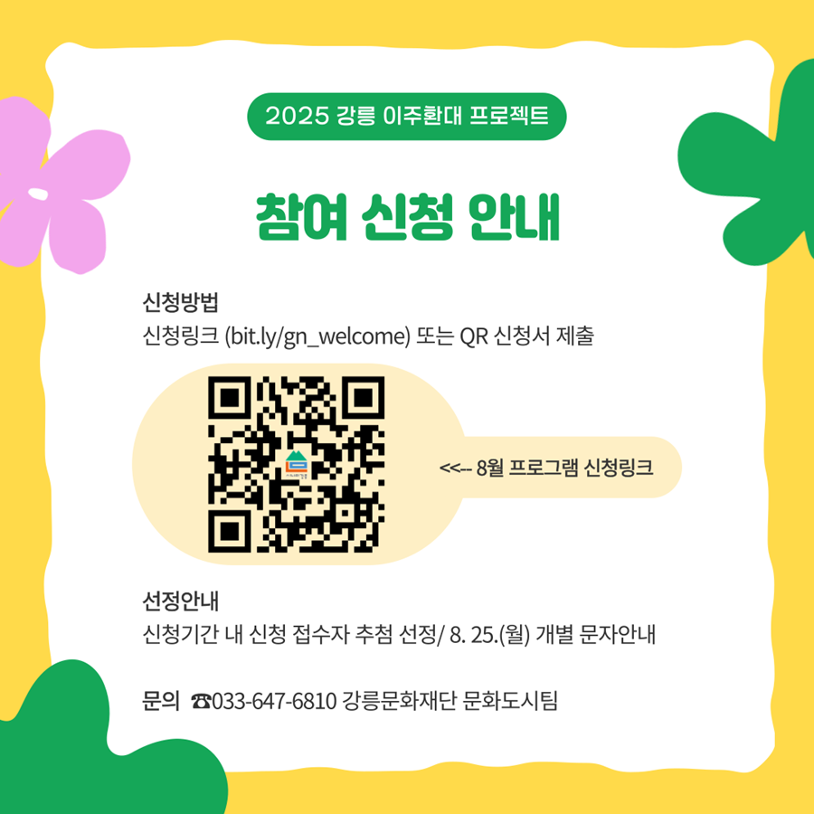 ☎문의 : 033-647-6810 (강릉문화재단 문화도시팀)
