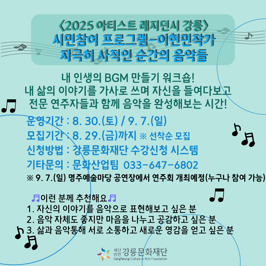 [모집] 내 인생의 BGM만들기 워크숍 참여자 모집 (~ 8.29.)