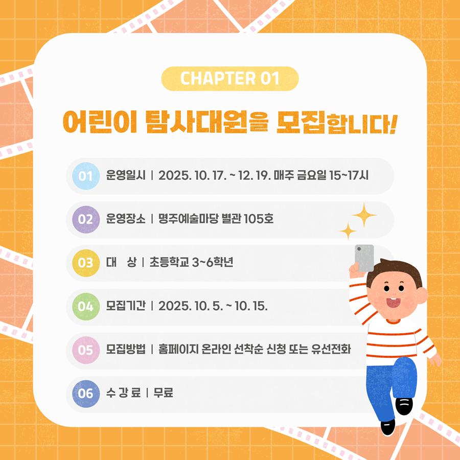 · 운영일시 : 2025. 10. 17. ~ 12. 19. 매주 금요일 15:00~17:00