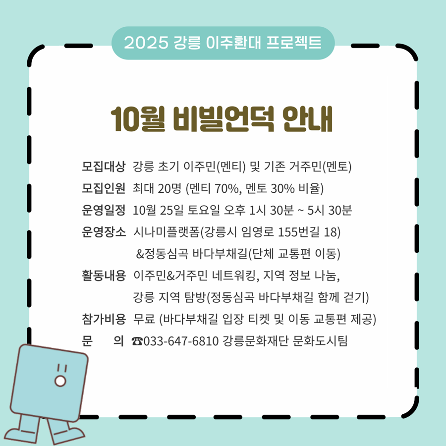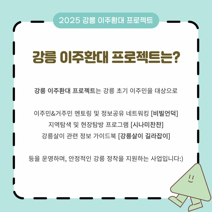 강릉이 궁금하고 이웃을 만나고픈 이주민 멘티&거주민 멘토 함께해요.
