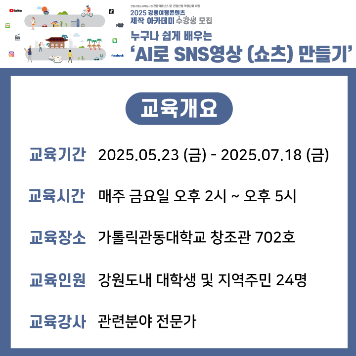 [교육/포럼] 2025 강릉여행콘텐츠 제작 아카데미 5기 수강생 모집