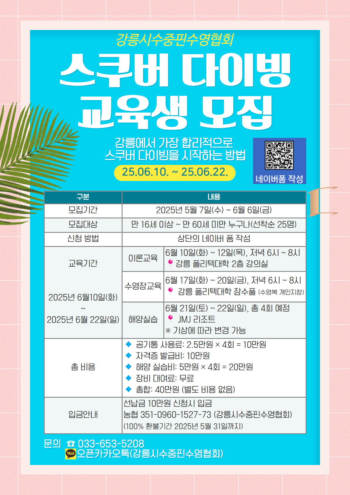 [기타] 제20회 강릉시수중핀수영협회 스킨스쿠버 강습회